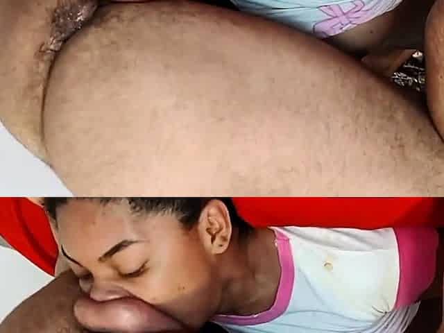 Dorky ebony beauty getting her face covered in cum: Blowjob, Cumshot Interracial Porn