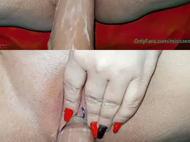 Cum lube twat massage by breasty teen redhead goo play