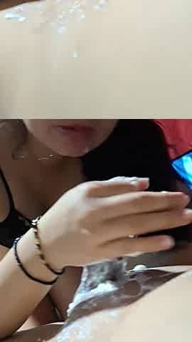 Tiny Asian female providing blow-job before receiving a ginormous facial