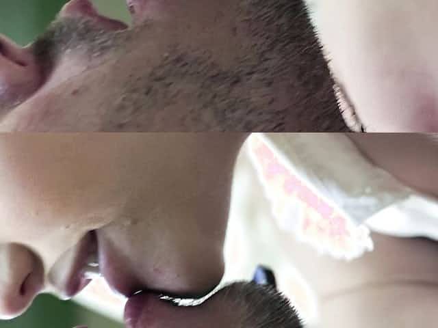 Passionate kissing between a blonde schoolgirl and her stepdaddy before romantic sex