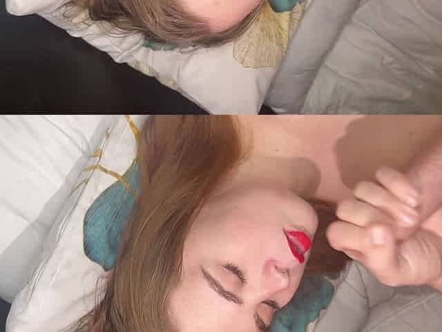 "Slut with red lips swallow it"
