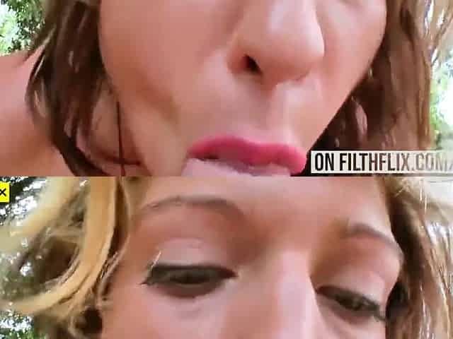 Attractive big boobed ex mouth filled with sperm outdoors