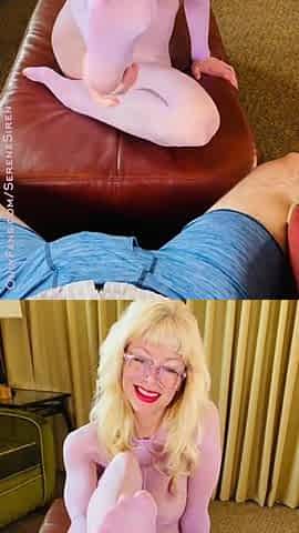 Front Facing Thighjob in Opaque Nylon Bodystocking Makes Him Cum!