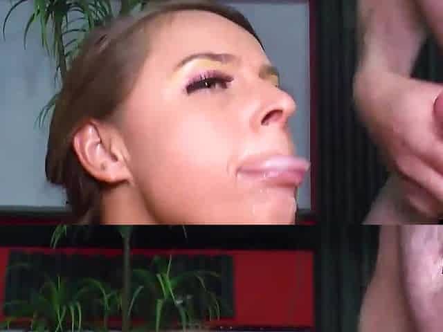 Gorgeous busty babe swallows cum like a pro