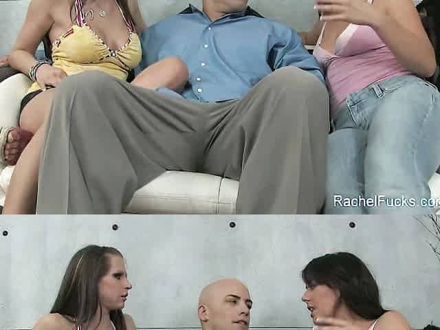 "Two horny chicks fucking one dick"