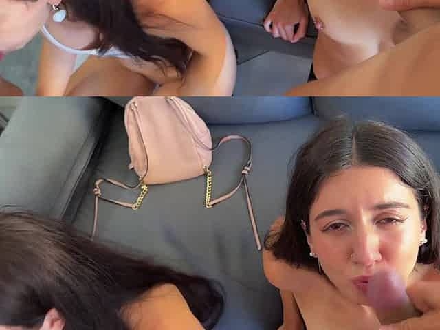 POV Threesome Redhead and Latina Fucks Guy and Cumkiss