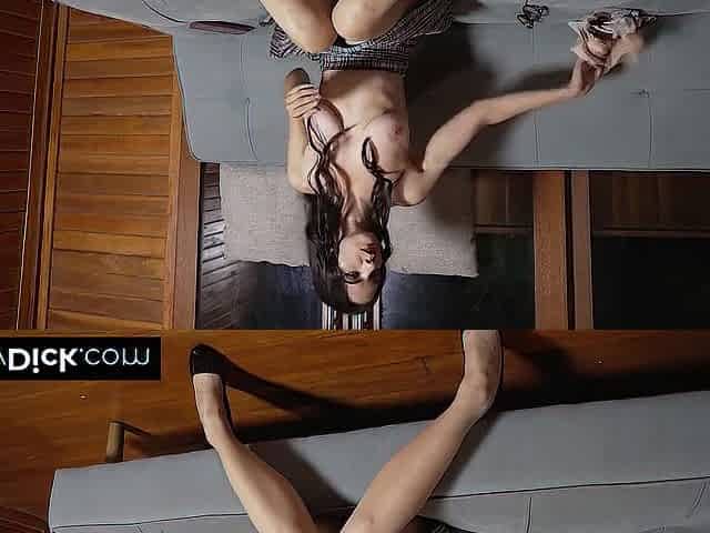 Breasty brunette hair playing with herself after seeing a tiny ramrod