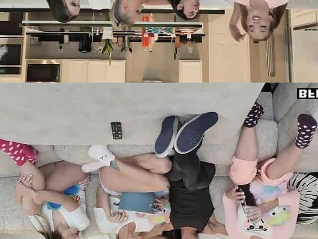 Spin the bottle game ended with two teen hussies banging their stepdads in a foursome