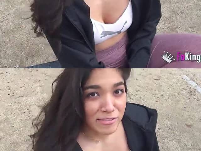 Sporty young girl from the street fucked in ripped yoga pants