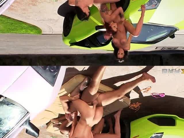 Outdoor car sex with big boobs brunette MILF Aubrey Black