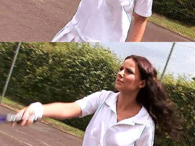 Watch how she enjoys DP as she handles two cocks on the tennis court