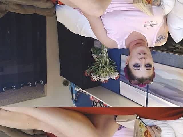 A cute babe Stella Cardo in a wig spreads her legs and starts to get herself off