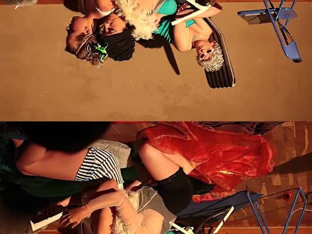 threesome fuck orgy on public stage