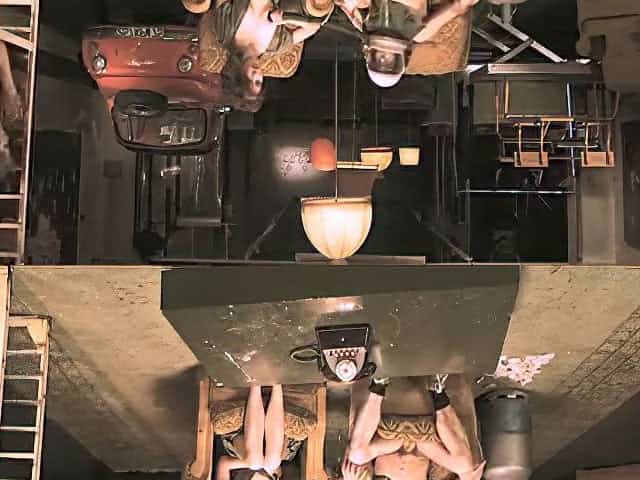 Slut fucked together on stage in the ass, homemade video