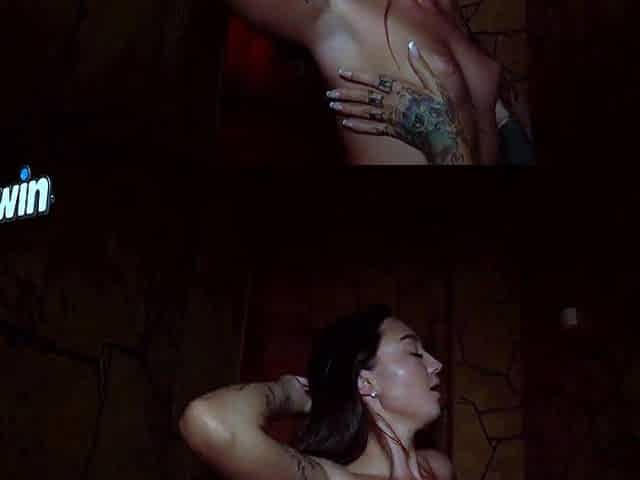 DaneJones skinny babe multiple orgasms as they fuck on the stairs