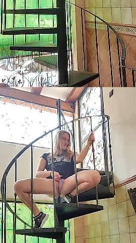 Beautiful solo session on the stairs with a hot blonde Viky Lace