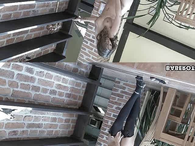 Perfect big tits - spread legs on stairs