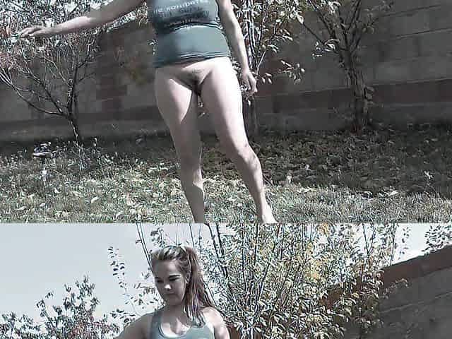 A aged mother i'd like to fuck with a shaggy twat pees whilst standing in the garden.