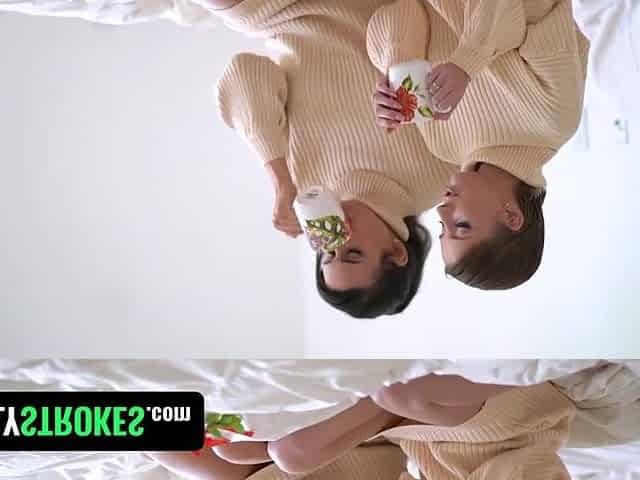 Step sisters share a cock during their first cam threesome