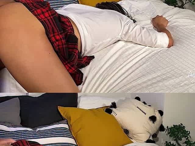 Skinny Step-Sister Caught Masturbate and Fuck Anal by Bro