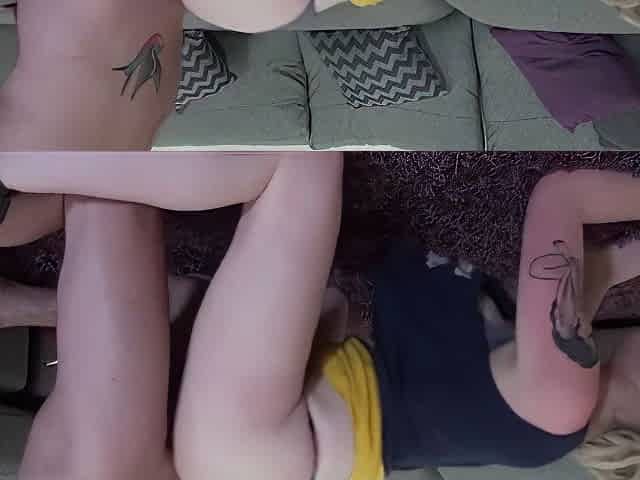Stepdad catches his stepdaughter having sex with herself on the couch