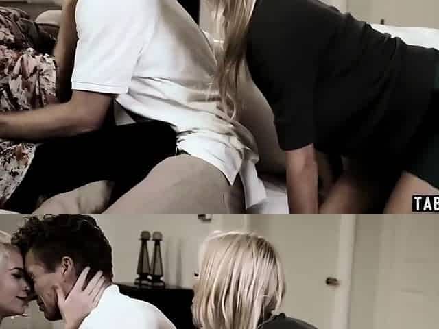 Super sexy moms first hot threesome fuck, Super sexy mom Syren catches her son fucking with a hot blonde Jessie. Mom Syren wants