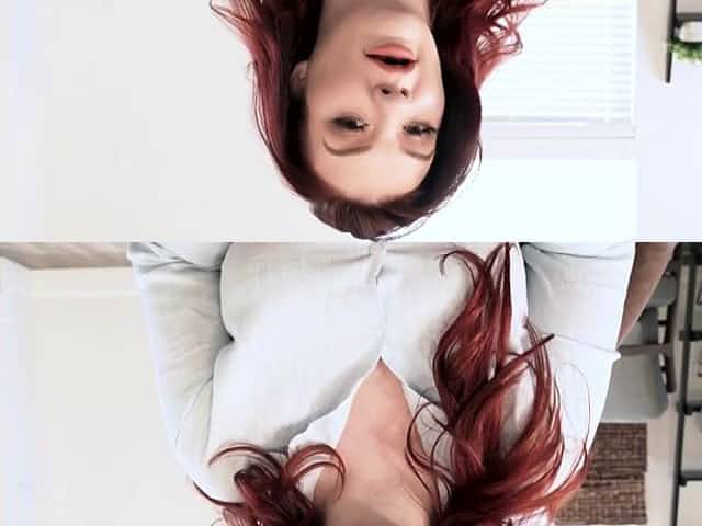 Blue haired MILF stepmom hops onto stepsons big dick