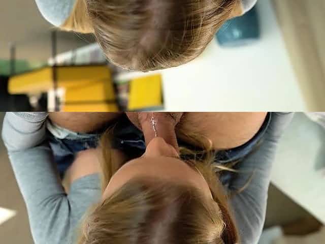 Stepsister secretly sucking dick in the kitchen before fucking