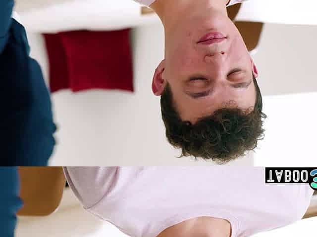 Stepson joins his stepmom and her student as they make out together