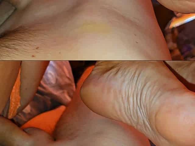 MILF with big tits in mesh underwear seduces stepson with her feet