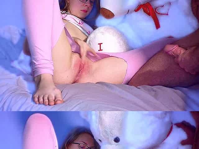 Innocent cutie Leotheredhead gets cozy smashing a pillow, wanting to be daddy's good girl