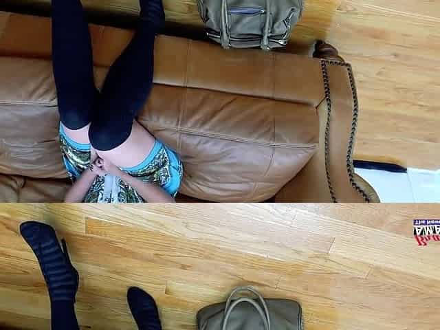 Solo Pussy Play for Horny Brunette Teen With Hairy Bush