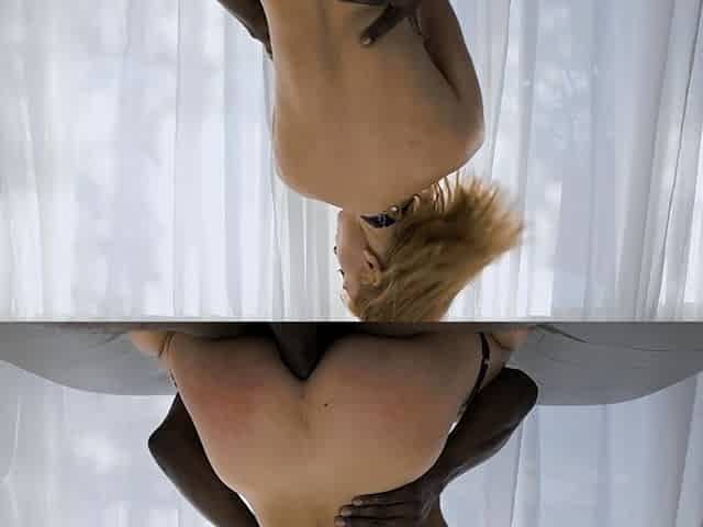 Appealing blond in ebony nylons butt drilled