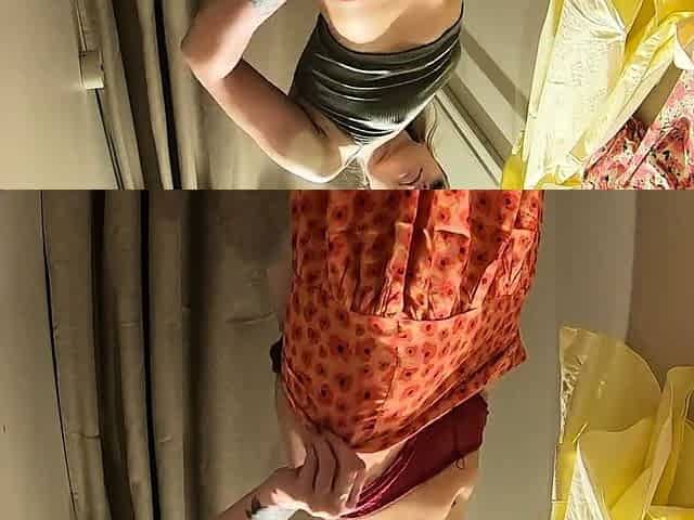 Customer finds a kinky shop assistant masturbating her slit in changing room