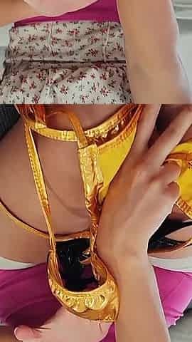 Shrunken Daddy Takes Me Bikini Shopping Trying on Haul Gold Microbikini Shanaxnow