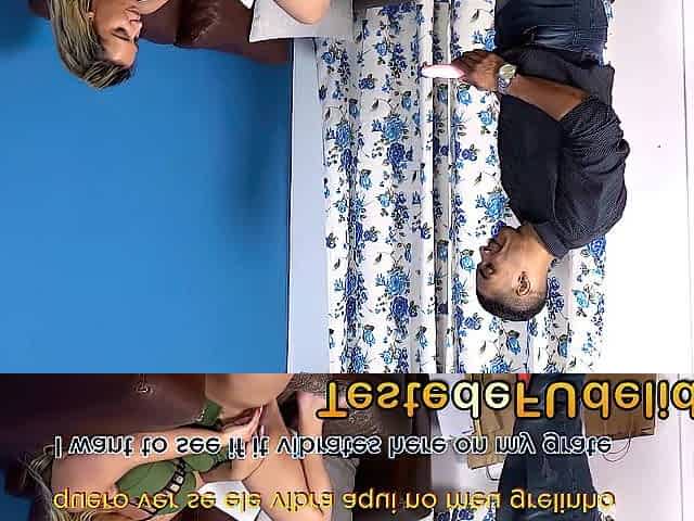 Shaking climax. Shopping. Hose and sneakers in public changing room HD
