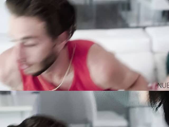 Busty brunette fucks her roommate's boyfriend and swallows his juice
