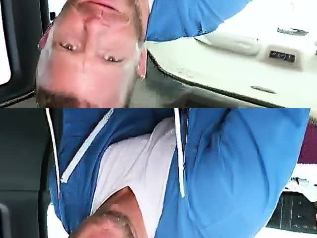 Straight stud gets big cock sucked in a van