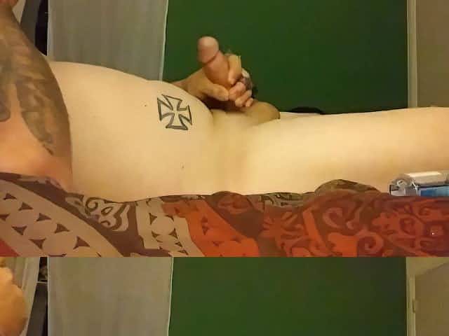 Hung tattooed stud jerks till he blows wearing gloves(cumshot closeup)