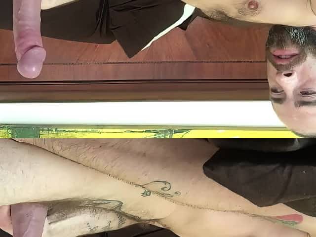 hairy man magnify cock in front of the mirror