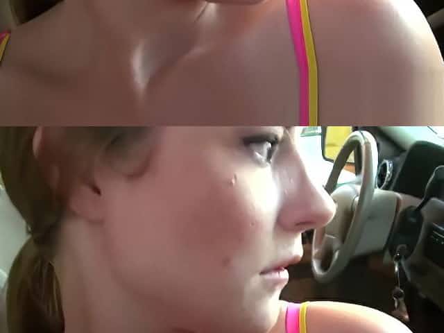 Amateur stranded teen Dani Desire screwed up in the car