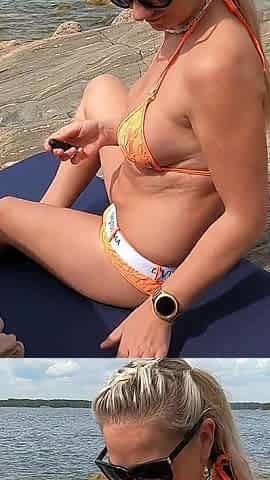 MILF Decides to Play a Naughty Game at the Public Beach After She Noticed Fisherman Next to Her