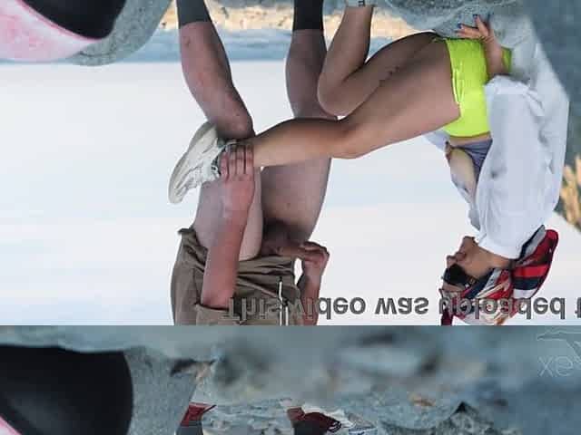 Milf makes stranger ejaculate with skillful handjob right on the beach