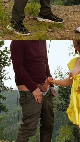Girl in A Yellow Dress Jerks Off My Cock in The Forest.