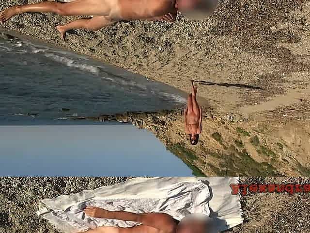 Stranger ramrod caught wanking on the beach and juiced