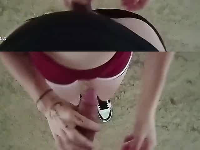 Stranger receives a beach handjob from a mysterious beauty
