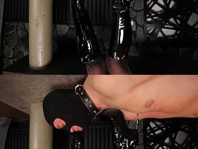 Femdom latex babe handling incel