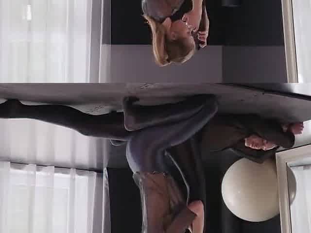 Watch them grind their nylon clad pussies together in scissors
