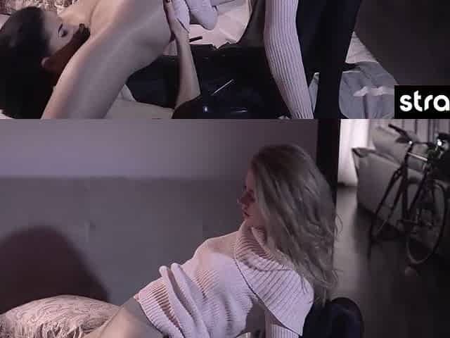 Watch kinky blonde lesbians enjoy intense strapless fucking