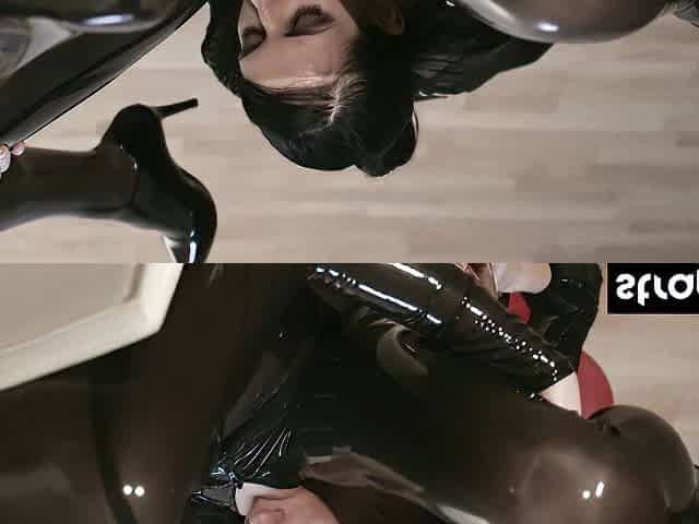 Sexy domme fucks her latex clad lesbian lover with a strap on